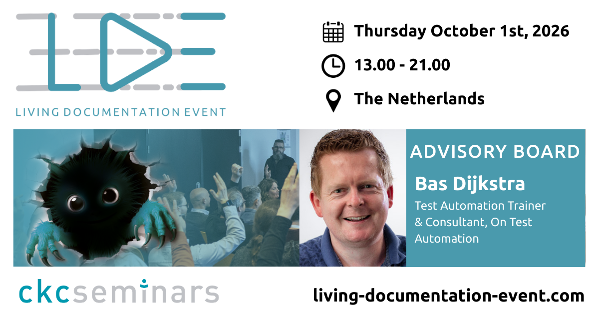 We’re excited to welcome Bas Dijkstra as the final member of the Advisory Board for the Living Documentation Event. With this last introduction, the Advisory Board is now complete and ready to help shape an inspiring next edition.